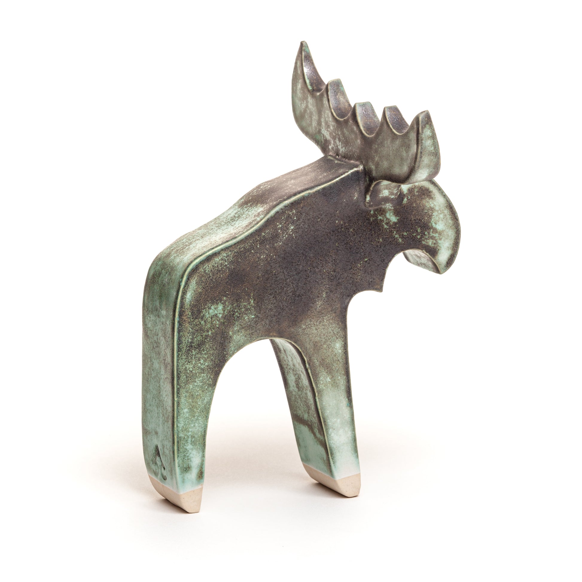 Dessa vackra älgar är gjutna i stengods, belagda med olika exklusiva glasyrer och högbrända i keramikugn. Varje älg är unik, och handgjord av Anna i hennes studio Åre, Jämtland. Älgarna har ett modernt, stilrent uttryck och en mycket gedigen känsla.