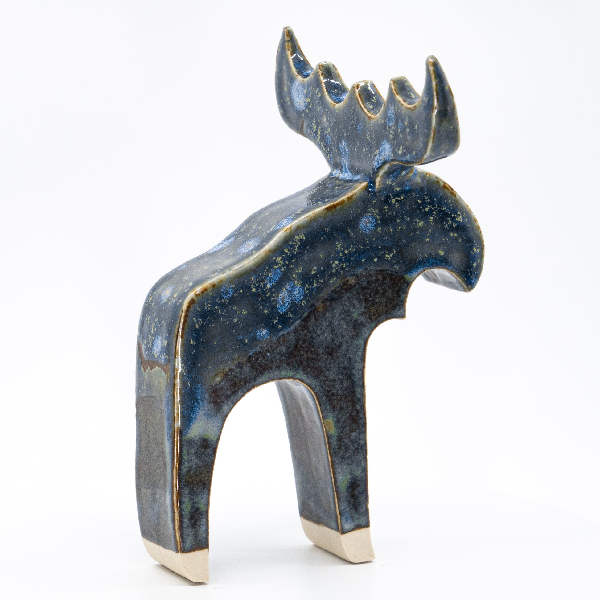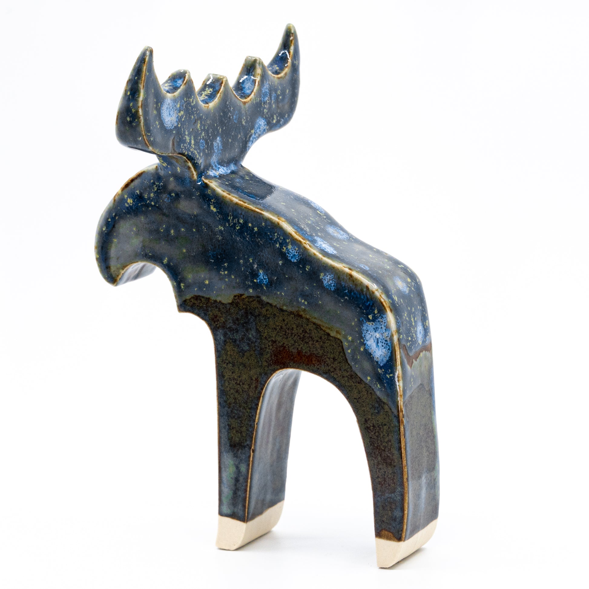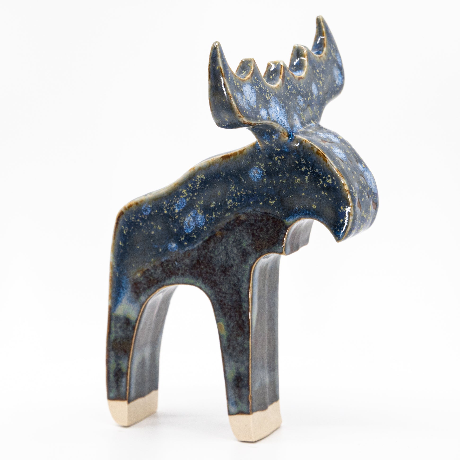 Dessa vackra älgar är gjutna i stengods, belagda med olika exklusiva glasyrer och högbrända i keramikugn. Varje älg är unik, och handgjord av Anna i hennes studio Åre, Jämtland. Älgarna har ett modernt, stilrent uttryck och en mycket gedigen känsla.