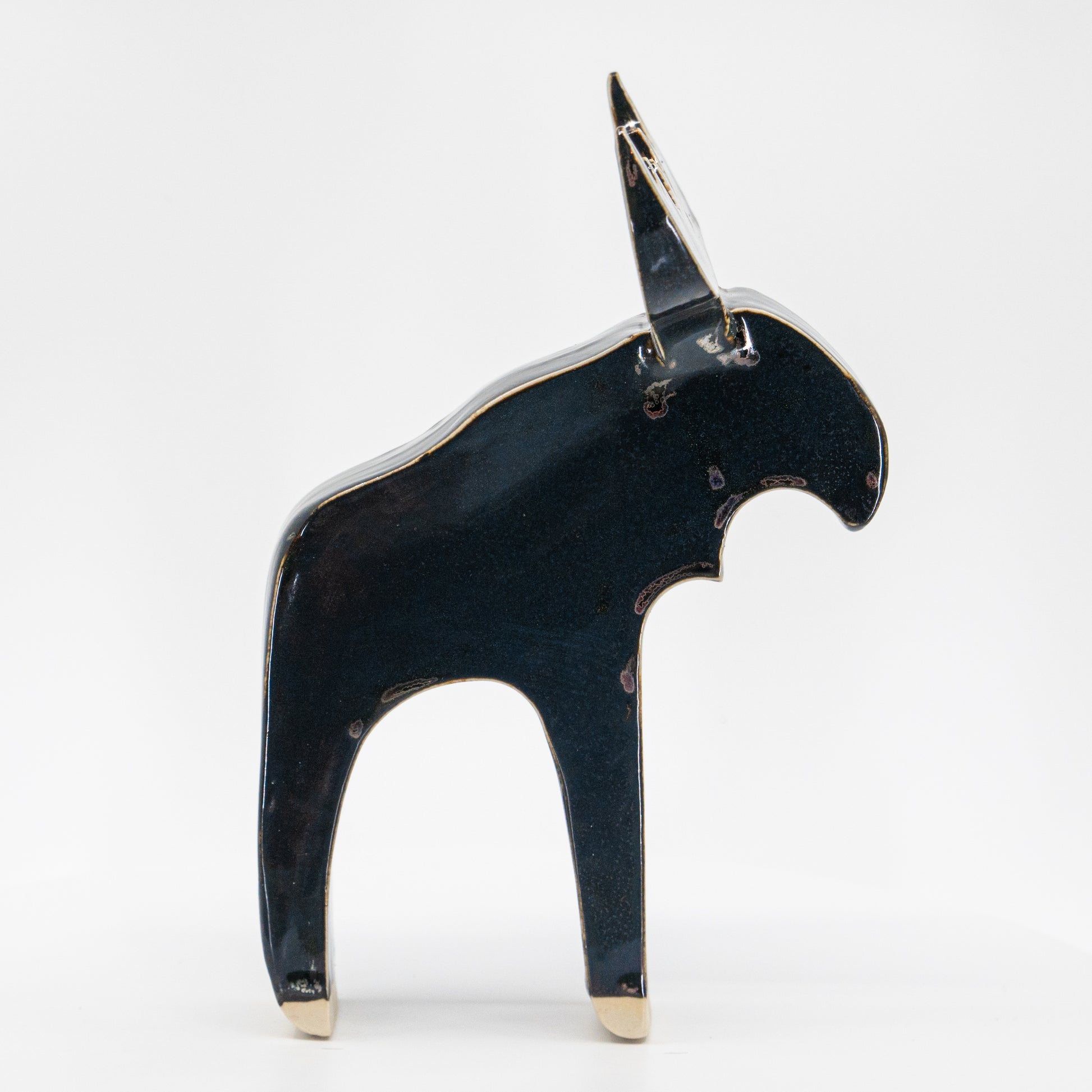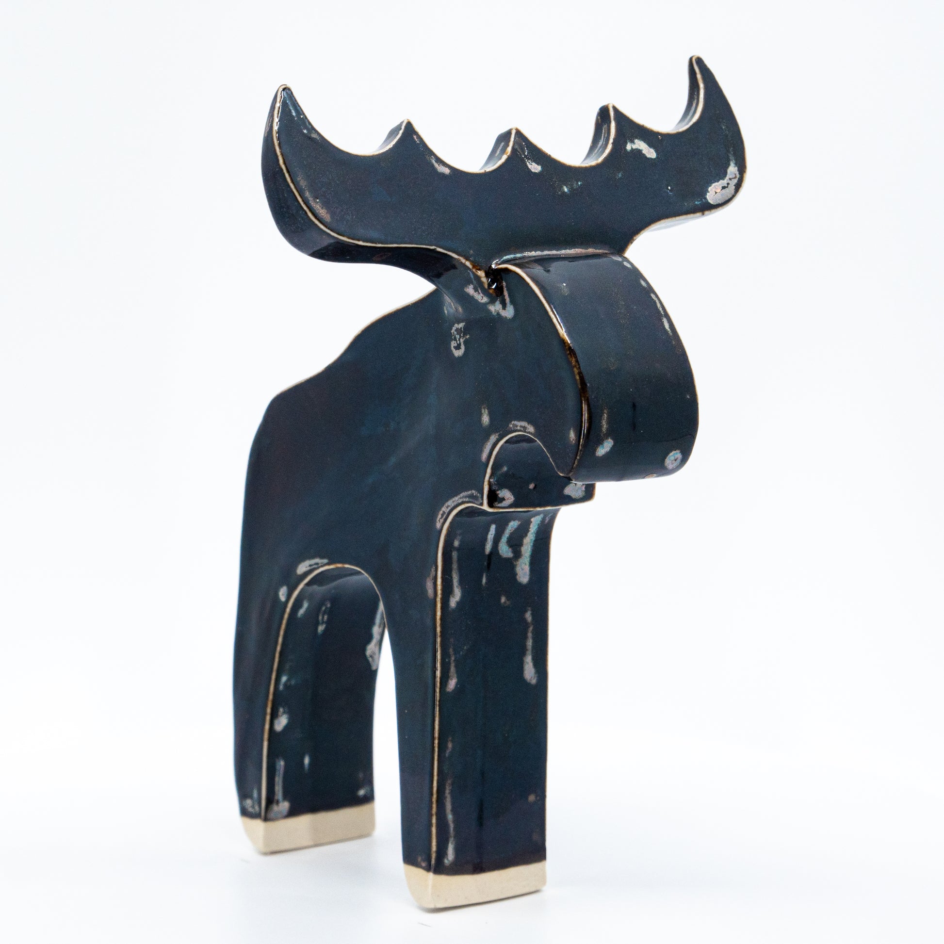 Dessa vackra älgar är gjutna i stengods, belagda med olika exklusiva glasyrer och högbrända i keramikugn. Varje älg är unik, och handgjord av Anna i hennes studio Åre, Jämtland. Älgarna har ett modernt, stilrent uttryck och en mycket gedigen känsla.