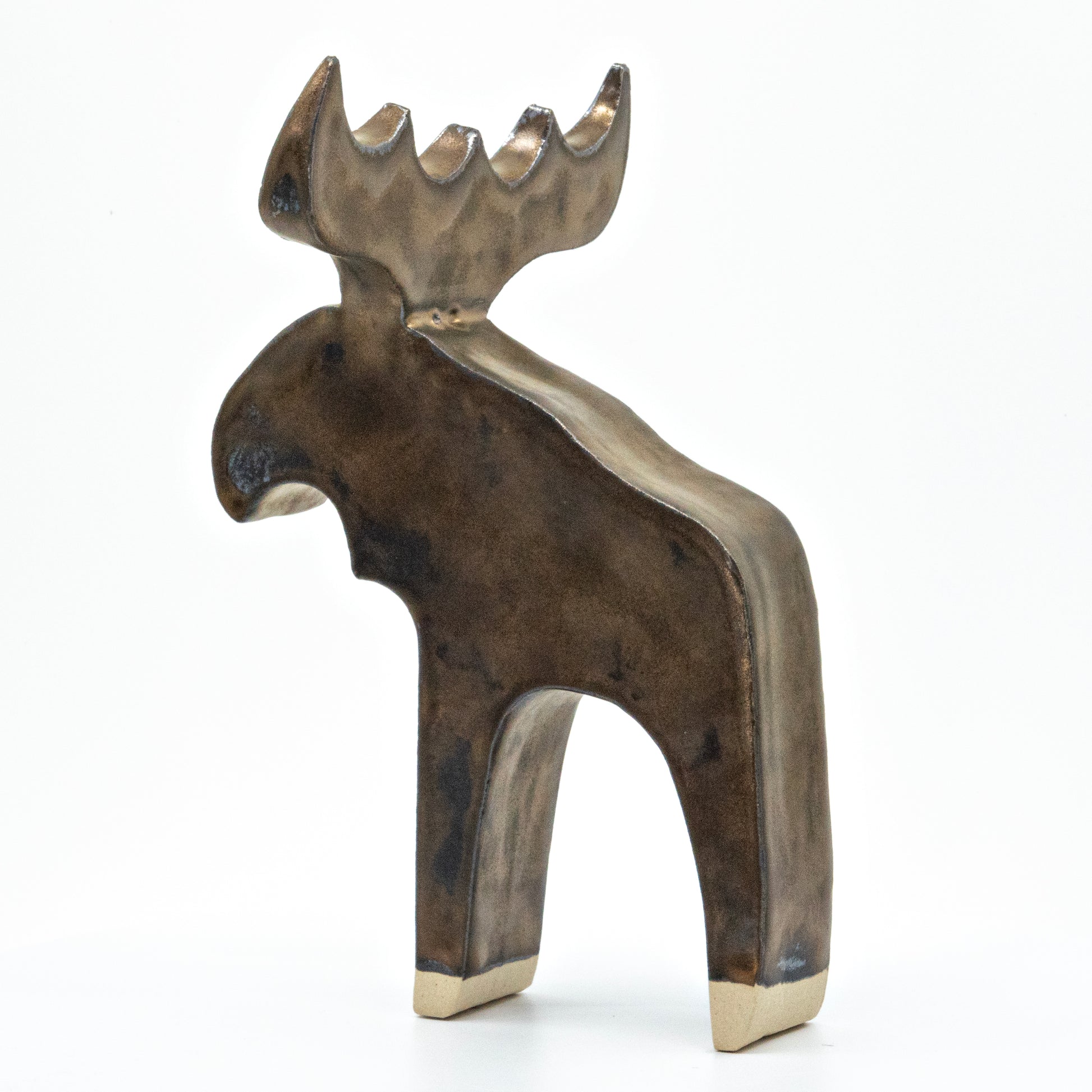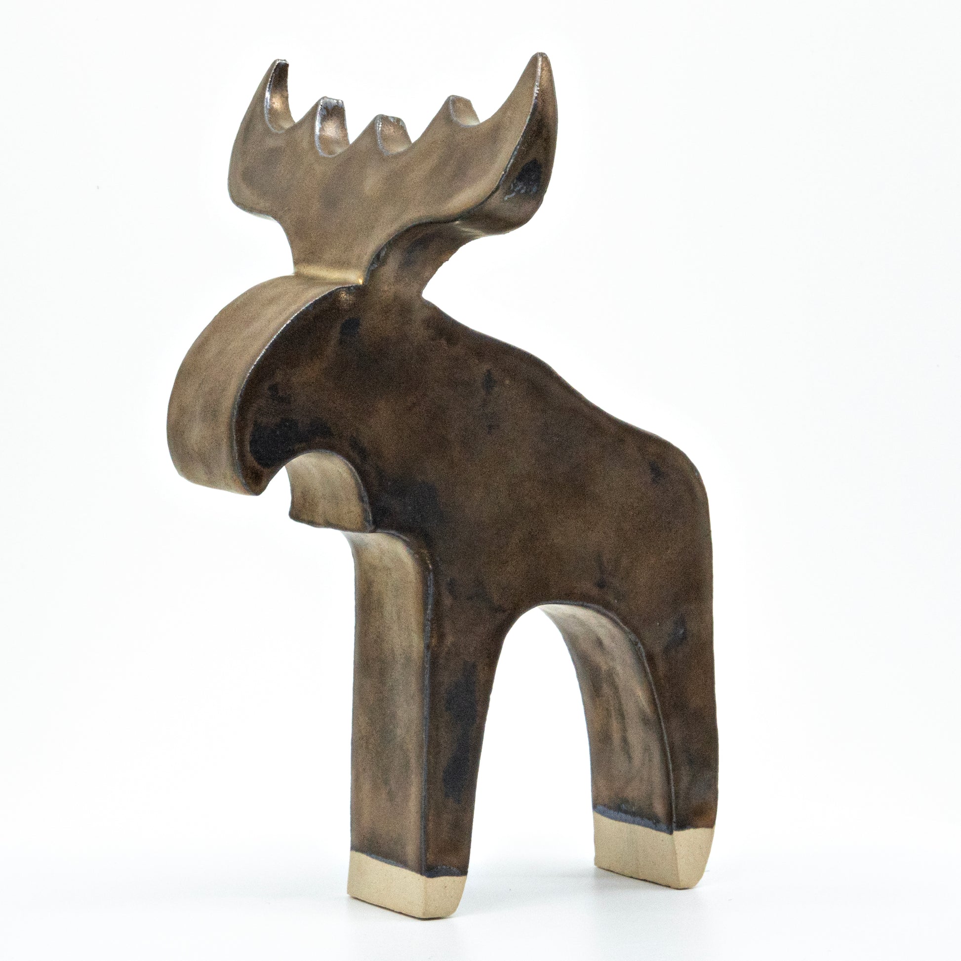 Dessa vackra älgar är gjutna i stengods, belagda med olika exklusiva glasyrer och högbrända i keramikugn. Varje älg är unik, och handgjord av Anna i hennes studio Åre, Jämtland. Älgarna har ett modernt, stilrent uttryck och en mycket gedigen känsla.