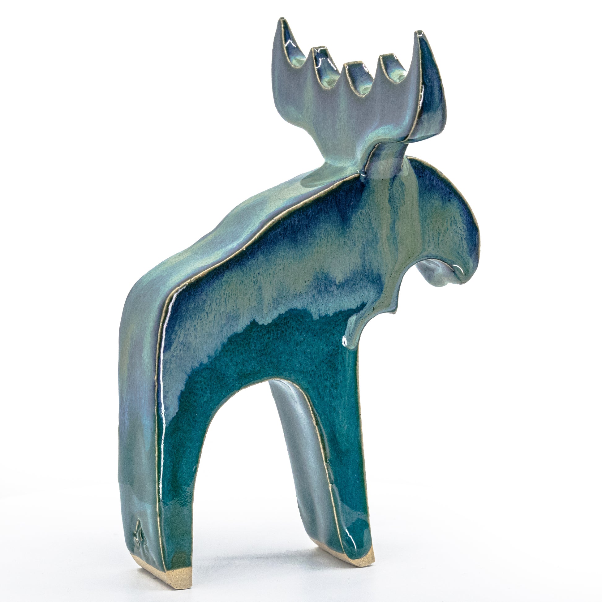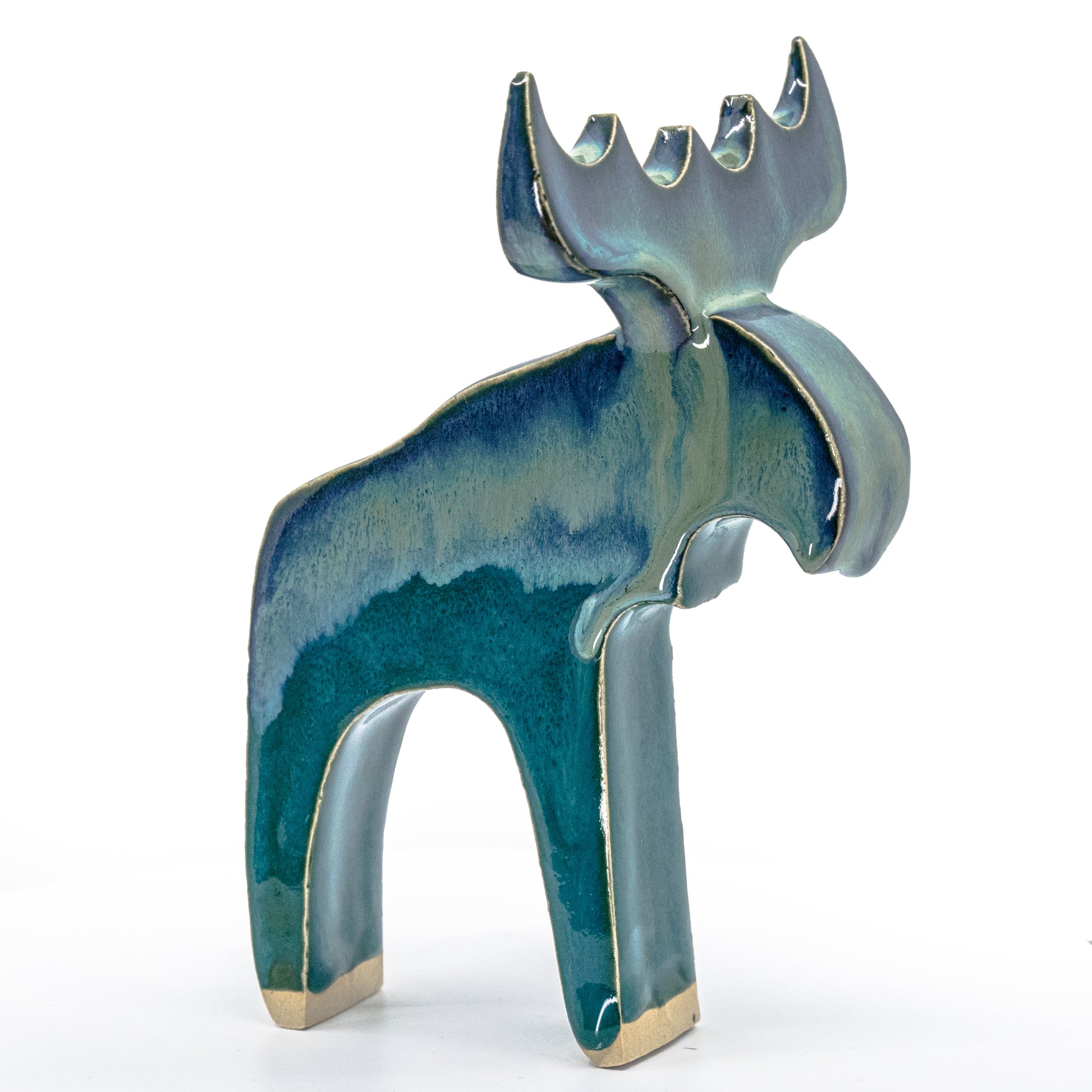 Dessa vackra älgar är gjutna i stengods, belagda med olika exklusiva glasyrer och högbrända i keramikugn. Varje älg är unik, och handgjord av Anna i hennes studio Åre, Jämtland. Älgarna har ett modernt, stilrent uttryck och en mycket gedigen känsla.