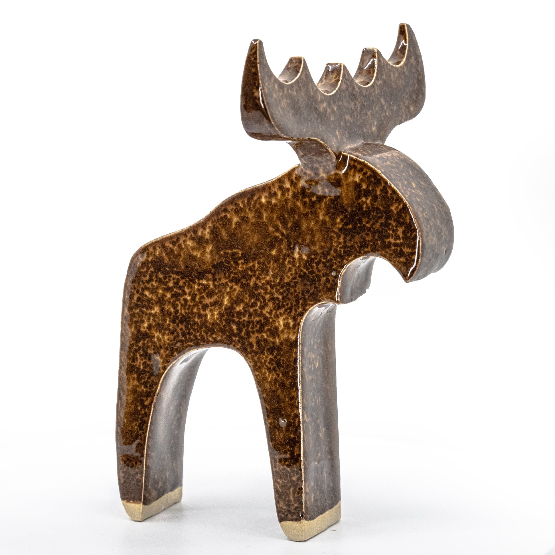 Dessa vackra älgar är gjutna i stengods, belagda med olika exklusiva glasyrer och högbrända i keramikugn. Varje älg är unik, och handgjord av Anna i hennes studio Åre, Jämtland. Älgarna har ett modernt, stilrent uttryck och en mycket gedigen känsla.